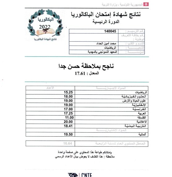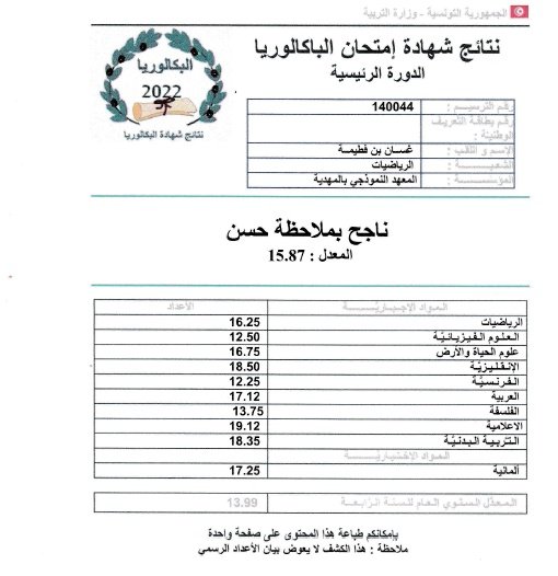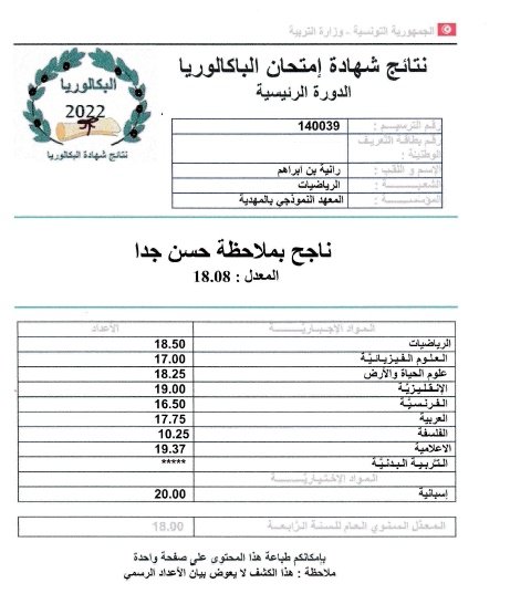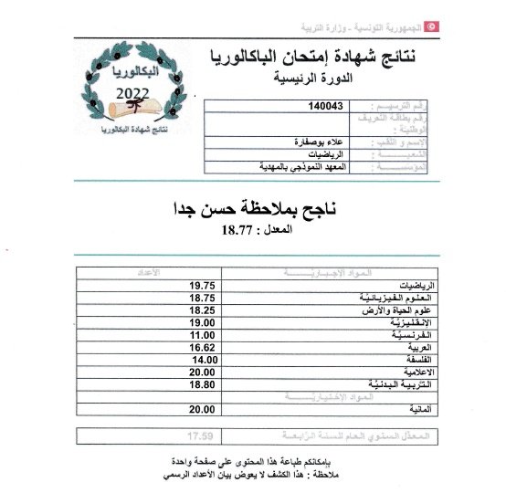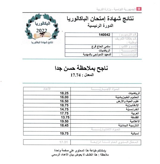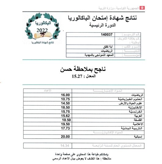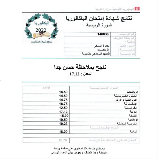 وقدم منصر في تصريح ل ”ام اف ام” المتفوقين عن كل شعبة مشيرا إلى تفوق علاء بوصفارة جهويا بمعدل 18.77.