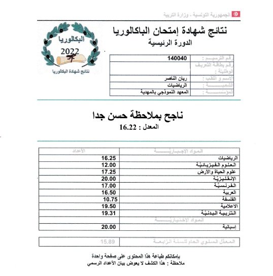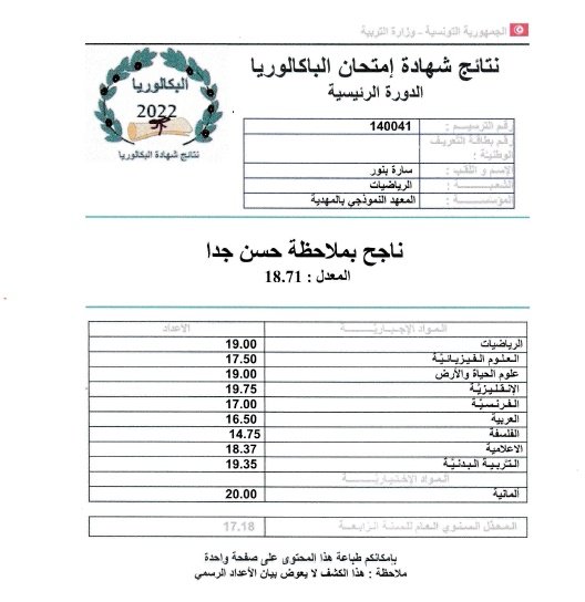 هنأ المندوب الجهوي للتربية بالمهدية المنجي منصر صباح اليوم السبت 25 جوان 2022 الناجحين في دورة بكالوريا 2022 قائلا إن نسبة النجاح في المهدية قدرت ب51.27 بالمائة  واحتلت الجهة المرتبة ال6 وطنيا.