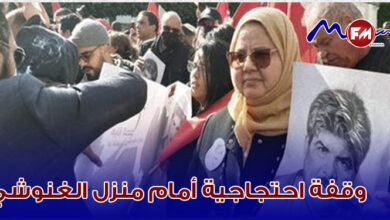 هيئة الدفاع عن الشهيدين تنفذ وقفة احتجاجية امام منزل الغنوشي .. والأمن يضع الحواجز الحديدية