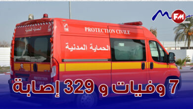 الحماية المدنية تسجل 7 وفيات و 329 إصابة خلال الــ 24 ساعة الفارطة