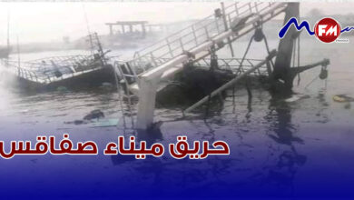 ميناء صفاقس : السيطرة على الحريق بعد إتخاذ القرار بإغراق المركبة في ظل وجود رياح قوية